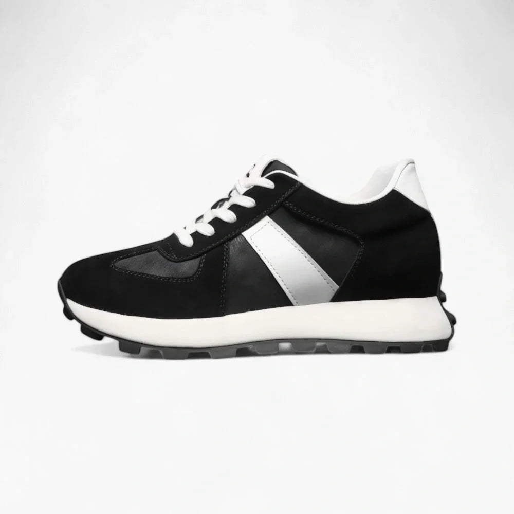 Han hade redan testat inläggssulor, men de var otroligt obekväma och såg konstiga ut. Dessa skor däremot ser ut som helt vanliga sneakers, men de ger honom 10 cm extra. För att vara ärlig märkte jag det inte ens i början. Toppen!
