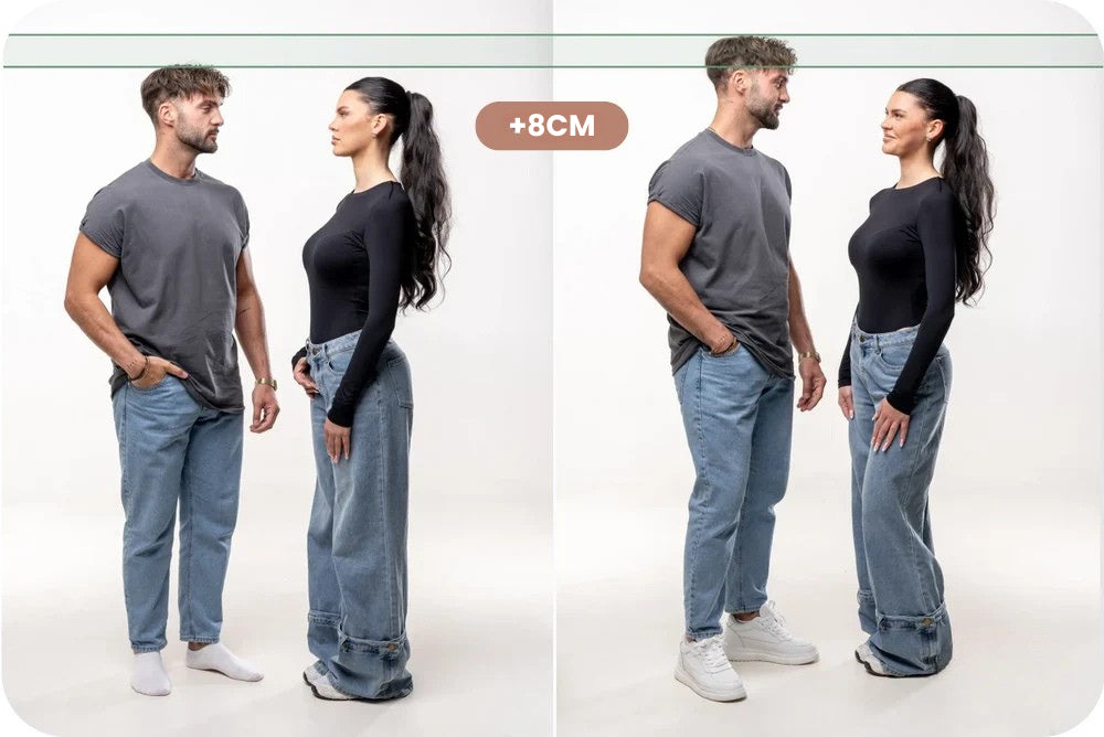 Vad skulle 8 cm extra betyda för ditt självförtroende? Mer pondus. Mer trygghet. Mer dig själv. Vår osynliga höjning förändrar inte bara din längd, utan också hur du känner dig – och hur andra ser dig. En styrka som syns, en trygghet du känner.