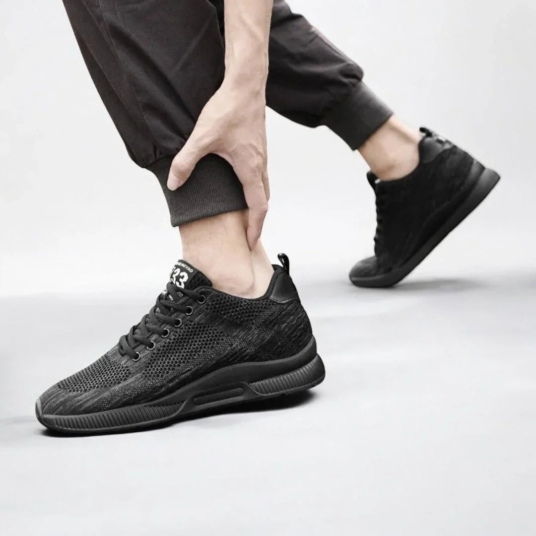 Han hade redan testat inläggssulor, men de var otroligt obekväma och såg konstiga ut. Dessa skor däremot ser ut som helt vanliga sneakers, men de ger honom 10 cm extra. För att vara ärlig märkte jag det inte ens i början. Toppen!