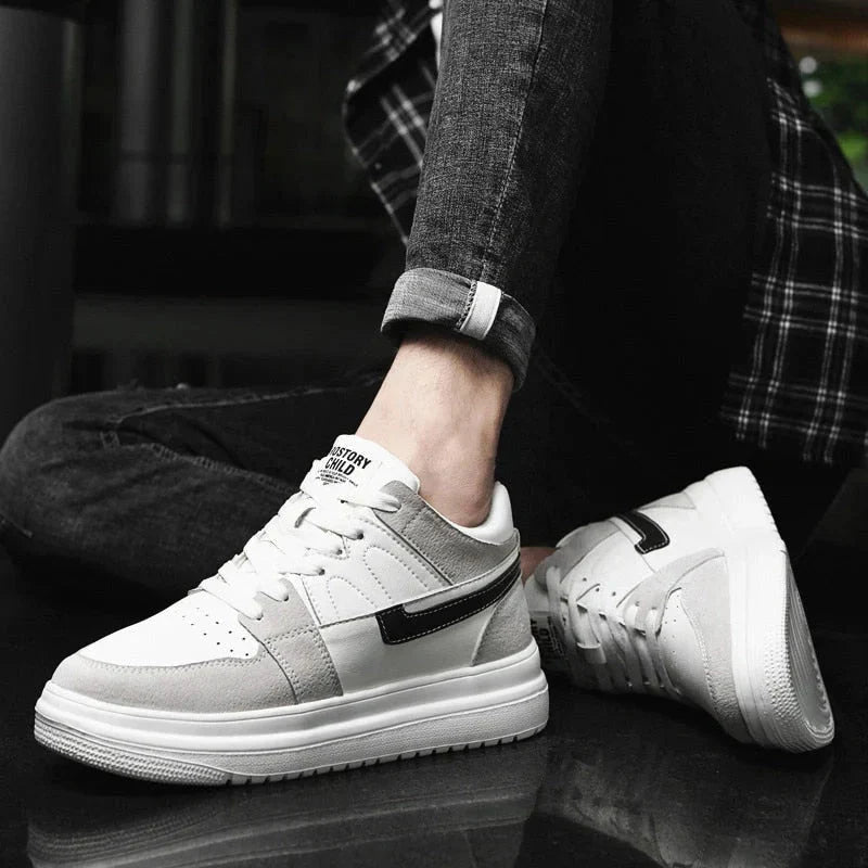 Han hade redan testat inläggssulor, men de var otroligt obekväma och såg konstiga ut. Dessa skor däremot ser ut som helt vanliga sneakers, men de ger honom 10 cm extra. För att vara ärlig märkte jag det inte ens i början. Toppen!